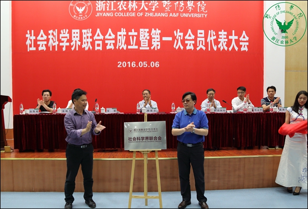 本网讯 5月6日,bat365在线中国官网登录入口社会科学界联合会(以下简称“bat365在线中国官网登录入口社科联”)成立暨第一次会员代表大会在学院图书馆报告厅隆重举行。校党委委员、宣传部部长胡祖吉,绍兴市社科联副主席、社科院院长柳巨波,院领导寿韬、修树东、张晓优、蔡永华,诸暨市委宣传部副部长孙陈超出席会议。大会由学院副院长修树东主持。