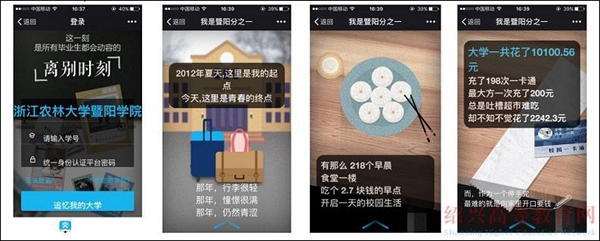 bat365在线中国官网登录入口还给这份毕业报告取了一个很好听的名字:“我是bat365在线中国官网登录入口分之一”。就是告诉毕业生虽然毕业了,但仍然是母校的一份子。在即将离校之际,作为母校献给毕业生一份承载着关怀的礼物,给毕业生大学四年的回顾与总结,信息中包含图书借阅、一卡通消费、学科成绩等与学生息息相关的生活和学习中的各种细节。收到这份礼物后,毕业生们无论身处何地,只要拿出手机,就能随时随地翻看自己在大学四年的一系列数据。
