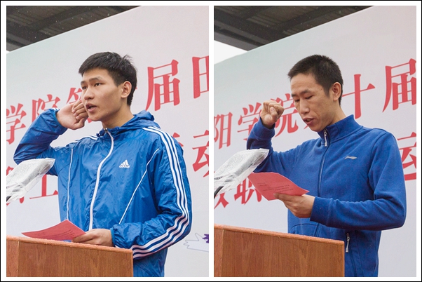 园林艺术系张明泽同学和体育军训部郑杰政老师分别代表运动员和裁判员宣誓。精彩的体操队汇演之后,运动会各项比赛正式开始。