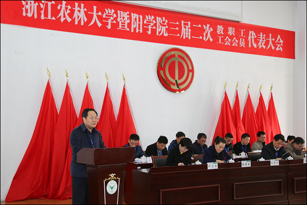 院长石道金向大会作了《规范设置促发展 拉高标杆谋新篇 全面推进学院各项事业科学发展》的工作报告。报告全面客观地回顾总结了学院两年来在改革发展、内涵建设、规范设置、人才培养、学科专业建设、社会服务、党建和思想政治工作、民生保障等各项事业所取得的成绩,明确了学院2017年的重点工作任务。