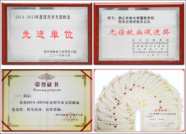 近日,绍兴市无偿献血先进集体和先进个人评选结果揭晓,我院被评为绍兴市“无偿献血先进单位”,院阳光志愿者服务总队荣获“高校无偿献血集体促进奖”,邓剑刚老师以及姚淼红、钟淑丽等6名同学荣获“无偿献血个人促进奖”,林斌、林高晖等11位同学被评为“大学生无偿献血积极分子”。