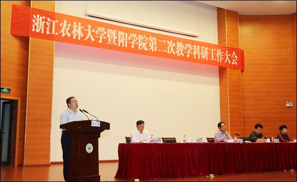 院长石道金在大会上作题为《凝心聚力真抓实干 努力开创教学科研工作新局面》的主题报告。报告总结回顾了第一次教学科研大会以来的工作,对今后三年的教学科研工作作了全面部署。石道金指出,近几年来,学院围绕建设省内一流、国内知名的创业型独立学院和培养应用型创业人才的目标,明确学院办学定位,牢固树立教学中心地位;初步形成学科专业群,学科专业水平明显提升;不断加强师资队伍建设,师资力量水平显著增强;不断深化教育教学改革,人才培养质量显著提高;不断完善创新创业平台,创新创业能力明显提高;建立“协同育人”机制,校地合作成效明显,教学科研工作取得显著成效,学院的发展迈上了新台阶。