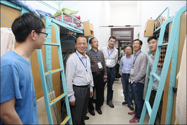 本网讯 省教育厅教学巡回诊断检查专家组一行四人5月7日晚进驻我院后,随即开展检查工作,实地走访检查了校园环境和硬件设施。5月8日上午举行了专家见面会和学院领导座谈会。下午,专家组随机抽取教室、实验室进行听课。晚上,专家组前往教学楼、图书馆、暨阳英才汇、学生寝室、创业街等地开展实地走访检查。