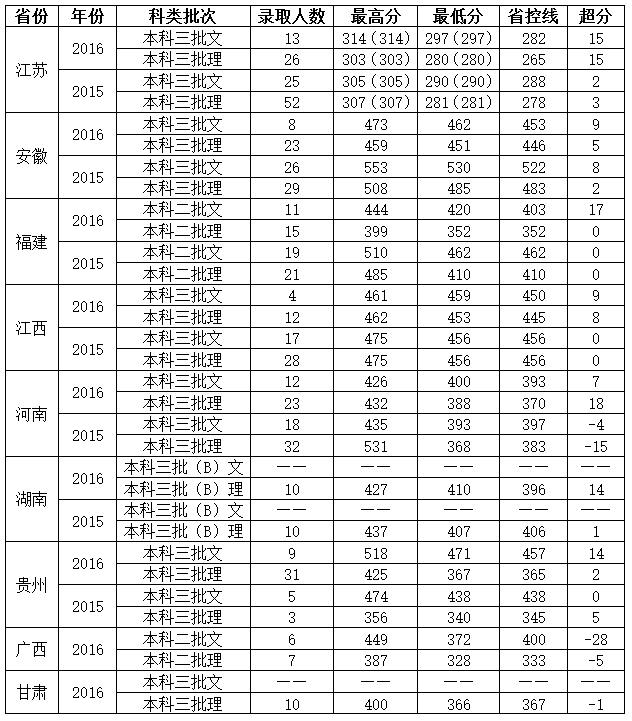 (二)bat365在线中国官网登录入口2015-2016年外省招生专业(类)录取最高分、最低分统计表