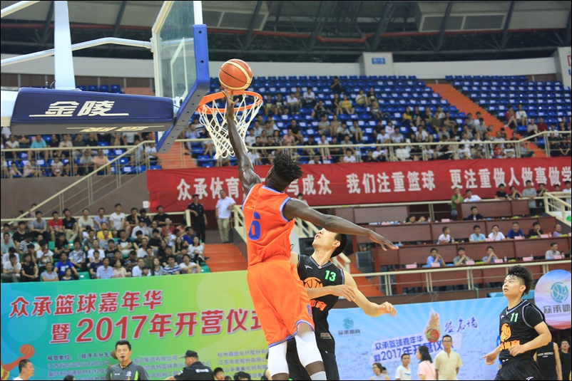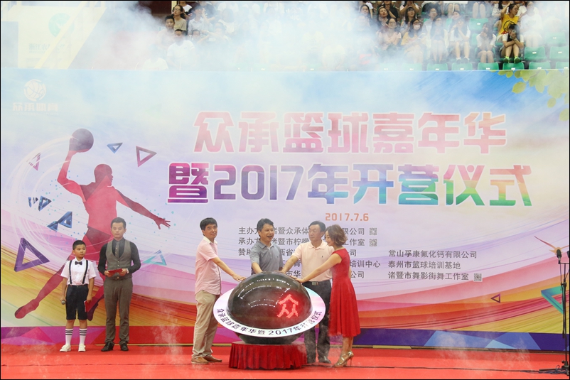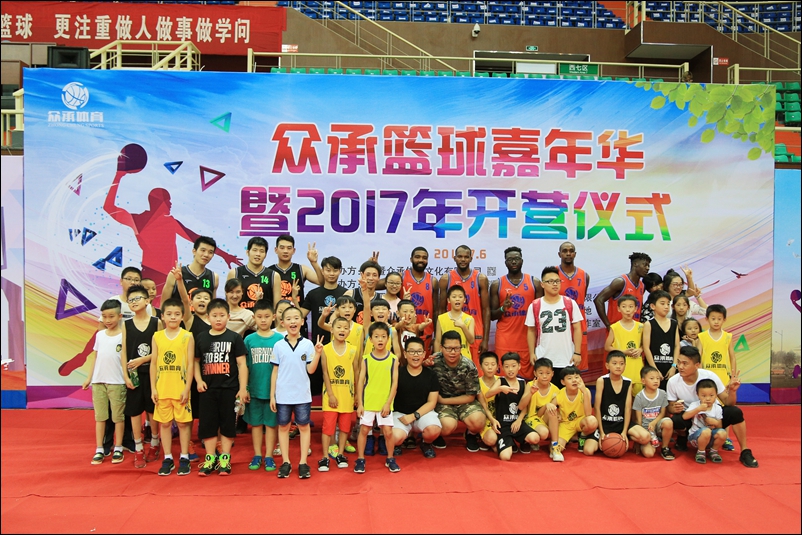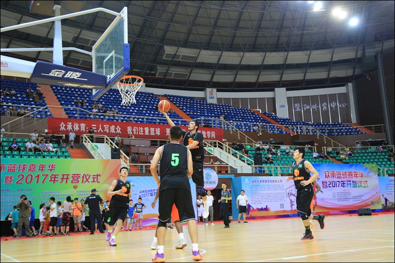 诸暨市篮球协会、体育局领导以及主办方负责人分别发言。开营仪式后,训练营中方教练携手军训教官,与外方教练上演了精彩的篮球赛事。