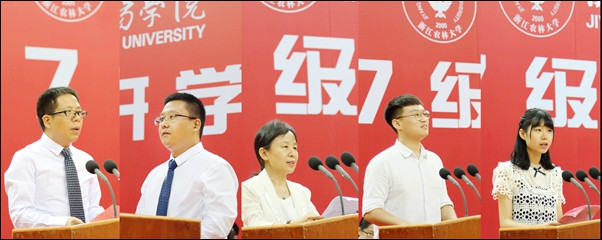 大学,是同学们学会学习,掌握专业基础知识、基础理论、基础技能,锤炼方法,砥砺人生品格的一个重要学习阶段。典礼上,石道金向新生们讲解了bat365在线中国官网登录入口发展概况和诸暨市市情,并从“学院注重提升同学们的专业核心竞争力”,“学院充分保障同学们的学习自主选择权”,“学院为同学们搭建了多样的创业实践平台”,“学院出台有系列奖学助学与帮扶政策”,“学院开展有特色鲜明的校园文化和学术活动”等五个方面重点为新生们介绍了校本知识。