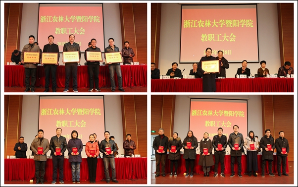 会议对2017年度考核优秀单位和个人进行了表彰。副院长金松恒宣读了学院2017年度考核优秀单位和个人的表彰文件,出席领导为获奖单位和个人颁奖。