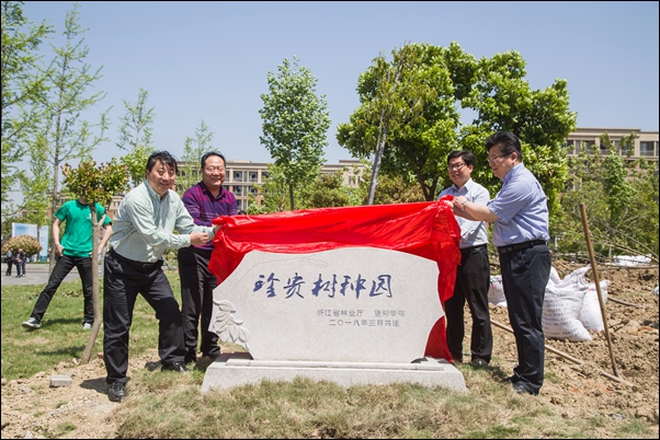 为更好地落实“美丽浙江”建设行动,推动绿色发展和绿色生活方式,2016年浙江省开展了“新植1亿株珍贵树五年行动计划”。学院为积极贯彻落实省委省政府此项行动精神,结合迎接学校校庆文化校园建设总体布局,从2017年开始谋划,充分发挥学院和本部的学科专业与人才优势,在诸暨市这个全国文明城市,打造一个以突出珍贵树种为主题的集校园、花园、乡土珍贵树种园“三园合一”的珍贵树种植物园,使校园更加美丽宜人,成为知识养成、文化传播的基地。珍贵树种植物园的建设得到了省林业厅及种苗站的大力支持和指导。