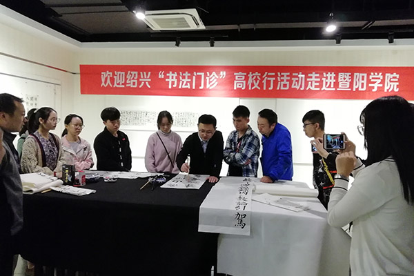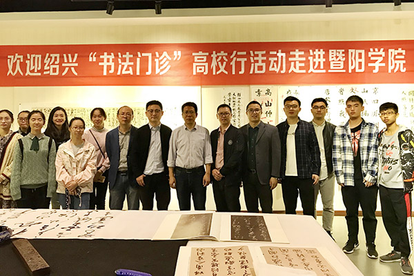 近日,以参加绍兴市第六届大学生书法竞赛为契机,为培育学院教工书画摄影俱乐部成员的业余爱好,特邀请由绍兴市教育局主办的“绍兴市书法门诊高校行”活动到学院指导书法爱好的师生,对师生书法作品进行点评。学院副院长金松恒、师生书法爱好者出席参加活动,中书协会员、绍兴市书协教育委员会主任陈文龙,绍兴市书法家协会盛新宇、邱金国、吴邦羿老师到场指导。