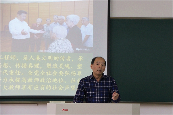 万泽民教授以“师德师风是高校教师的灵魂”为题,从“爱国守法、敬业爱生、教书育人、严谨治学、服务社会、为人师表”六个方面展开具体阐述。他强调,教师的使命是教书育人,责任是立德树人,规范是为人师表,价值是燃烧了自己,照亮了学生;教师是塑造人类灵魂的工程师,师德就是教师的灵魂;师风是教师的外在形象,表现教师的行为作风。“以德立身、以德立学、以德施教、以德育德。”“学高为师,身正为范。”万泽民教授希望老师们忠诚人民教育事业,树立崇高职业理想,恪尽职守、甘于奉献,终身学习、刻苦钻研,追求真理、精益求精,传播知识、传播思想、传播真理,塑造灵魂、塑造生命、塑造新人,弘扬主旋律、传递正能量,关心学生、爱护学生,矢志不渝引领学生在人间正道上阔步前行。