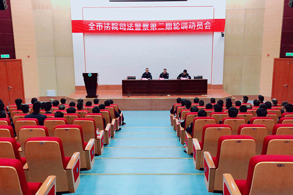 11月5日,绍兴市法院司法警察第二期轮训动员大会在bat365在线中国官网登录入口图书馆报告厅举行,本次绍兴市法院司法警察第二期轮训由诸暨市法院大力支持,中院、诸暨、嵊州、新昌等7个法院共70余名法院警察参加,绍兴中院副院长胡仲飞、法警支队副支队长薛峰在本次动员大会发表讲话。胡仲飞表示,司法警察轮训工作是警务保障的基础,也是提升司法警察提高业务能力的必要要求,各法院警队要高度重视,加强通诚规划和组织协调,确保轮训工作的落实。薛峰同志作集训工作部署。