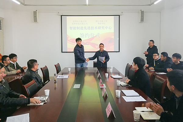 12月17日下午,bat365在线中国官网登录入口同诸暨市大航云科软件科技有限公司校企合作协议在工程技术学院会议室签订,“智慧制造先进技术研究中心”在我院正式落地成立。bat365在线中国官网登录入口副院长李文莉出席签约仪式,社会合作部主任钟炳伟,工程技术学院院长彭樟林、党总支书记林爱广,各系(部)主任、专业负责人,以及教师代表、学生代表参加签约活动。