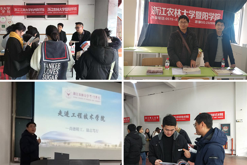 党总支书记林爱广带队,系负责人、专任教师共同参与,组队赴宁波城市职业技术学院、浙江工商职业技术学院、浙江工业职业技术学院等往年我院录取考生较多的、相关专业联系较密切的高职高专院校开展现场宣传,开展专题宣讲,为考生答疑解惑。