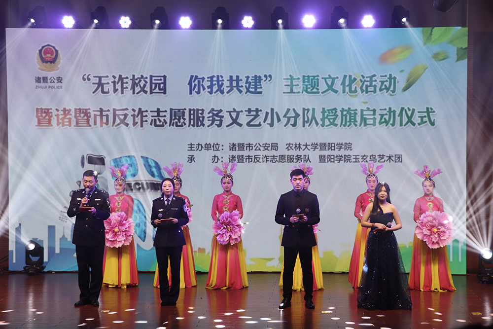 为提高广大师生的安全意识,我院于3月14日晚与诸暨市公安局一起举办了“无诈校园,你我共建”主题文化活动。bat365在线中国官网登录入口党委副书记高国俊,诸暨市公安局党委委员、政治处主任徐岳新,诸暨市团市委副书记何威以及各二级学院师生参加此次活动。