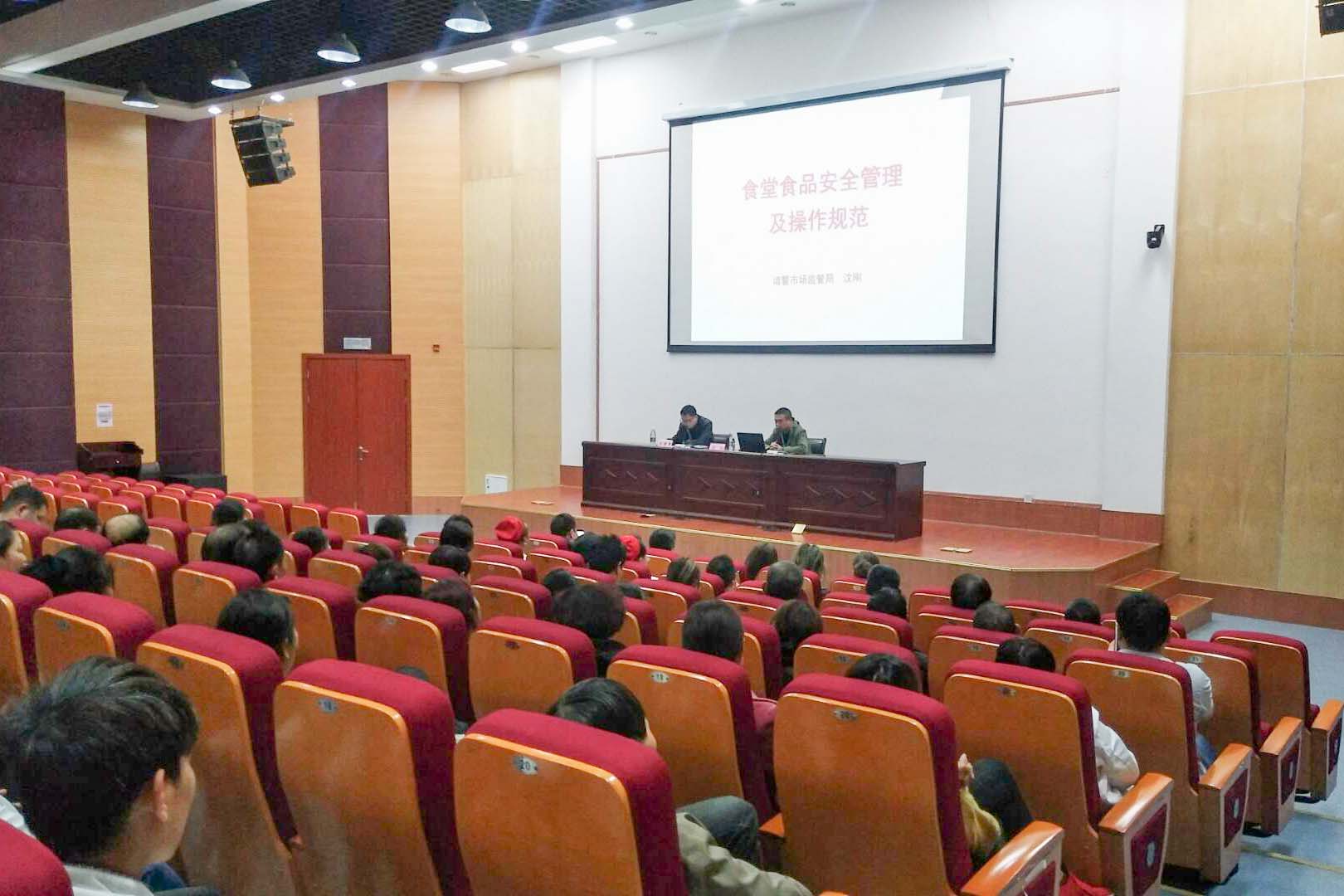 为加强我院餐饮食品安全、规范食品生产操作行为,4月11日下午,公共保障部在图书馆报告厅进行了“食堂操作规范与食品安全知识”专题讲座,后勤服务中心管理人员、食堂全体员工参加,特邀诸暨市市场监督管理局餐饮科负责人沈刚授课。