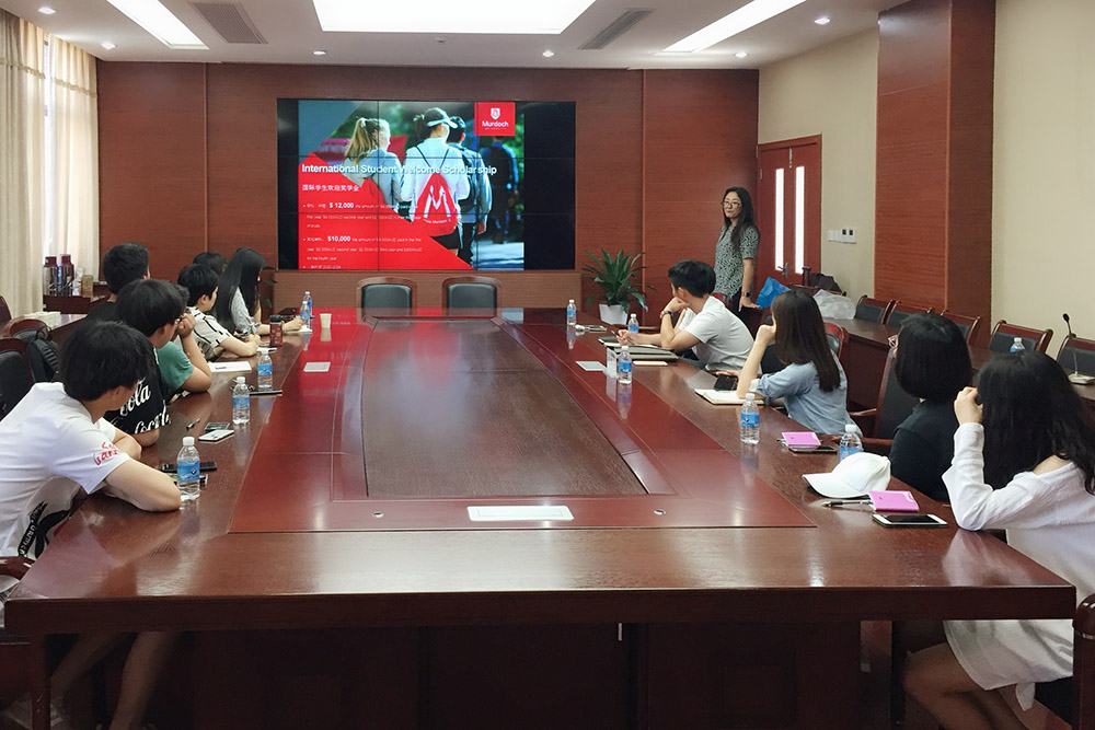 6月5日下午,澳大利亚莫道克大学学习深造答疑会在行政楼302会议室举行,国际合作与交流部负责人、有关学院师生代表参加。答疑会由莫道克大学本科、硕士研究生招生负责人赵晓丹女士主讲。