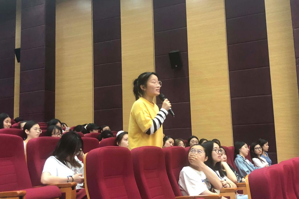 在交流互动环节,同学们围绕大学期间的学业生涯规划、职业生涯规划、专业学习、考研等方面提出了内心的疑问和困惑,杨嘉婷校友耐心细致地一一作了解答,并有针对性的提出了意见和建议。