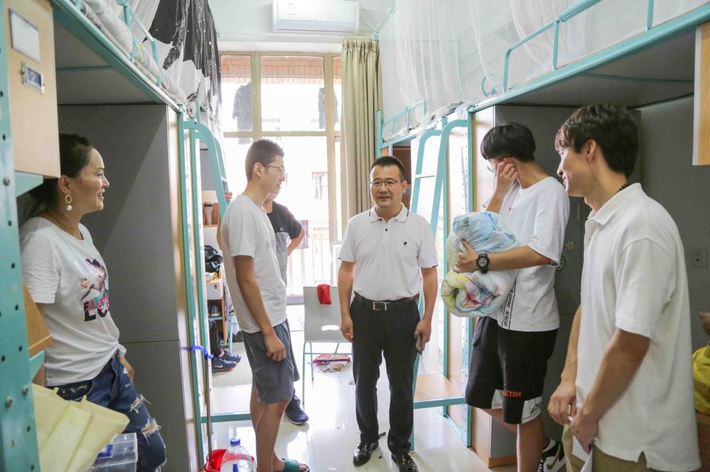 下午4时,学院党委书记潘国忠、党委副书记高国俊、党总支书记宣王威携辅导员分批次来到了学生公寓2号楼和8号楼,这里是人文学院新生在大学将要度过四年的家。走访过程中,领导们亲切地问候了新生们:“寝室还住的习惯么?”、“一个人来报道的啊?”“bat365在线中国官网登录入口的篮球馆很不错”一句句贴心的问候,真正地将关怀送进了新生的生活中,心坎里。同时也带着学院对他们的希冀,鼓励他们在学习上要努力,在生活上要自立。