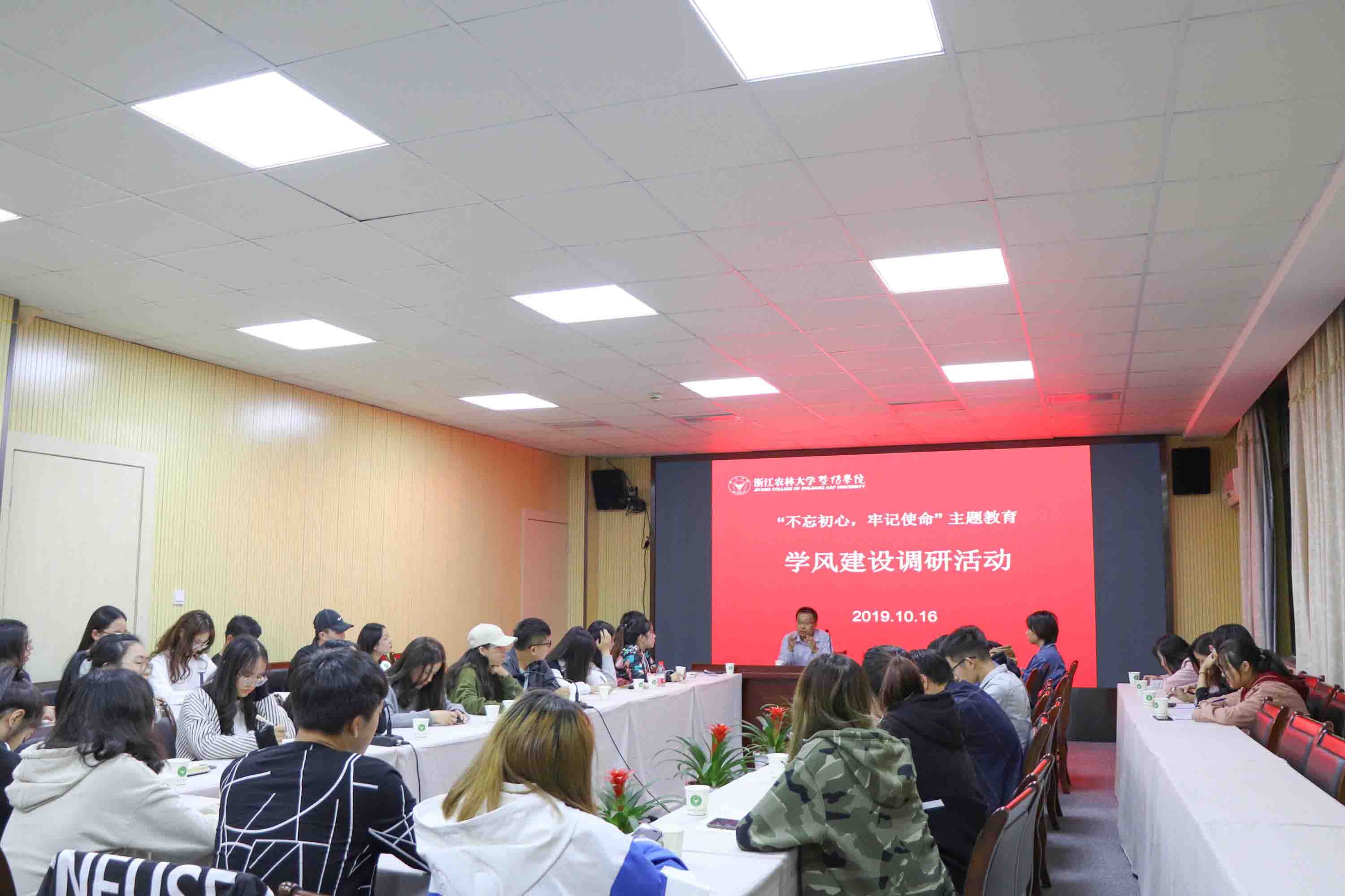 为进一步加强学风建设,深厚学习氛围,调研学生学习需求,引导学生积极的学习活动,10月16晚,在学院行政楼206召开了“不忘初心、牢记使命”主题教育——学风建设座谈会。院党委副书记高国俊主持,学工部相关负责人,各团学组织干部,班级学习委员代表参加本次会议。