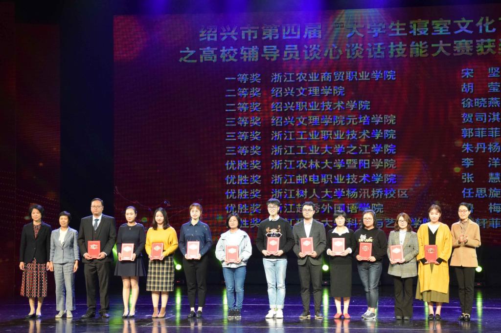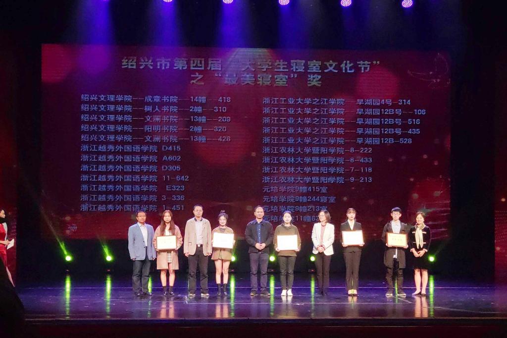 11月1日晚,由中共绍兴市委宣传部、绍兴市教育局和绍兴市新闻传媒中心主办的绍兴市第四届“大学生寝室文化节”之“最美寝室”颁奖展演在绍兴市文化中心隆重举行。市人大常委会副主任丁晓燕,市人民政府副市长顾涛,市政协副主席胡少云,市教育局、宣传部等相关领导出席,我院党委副书记高国俊带队参加了本次颁奖展演。