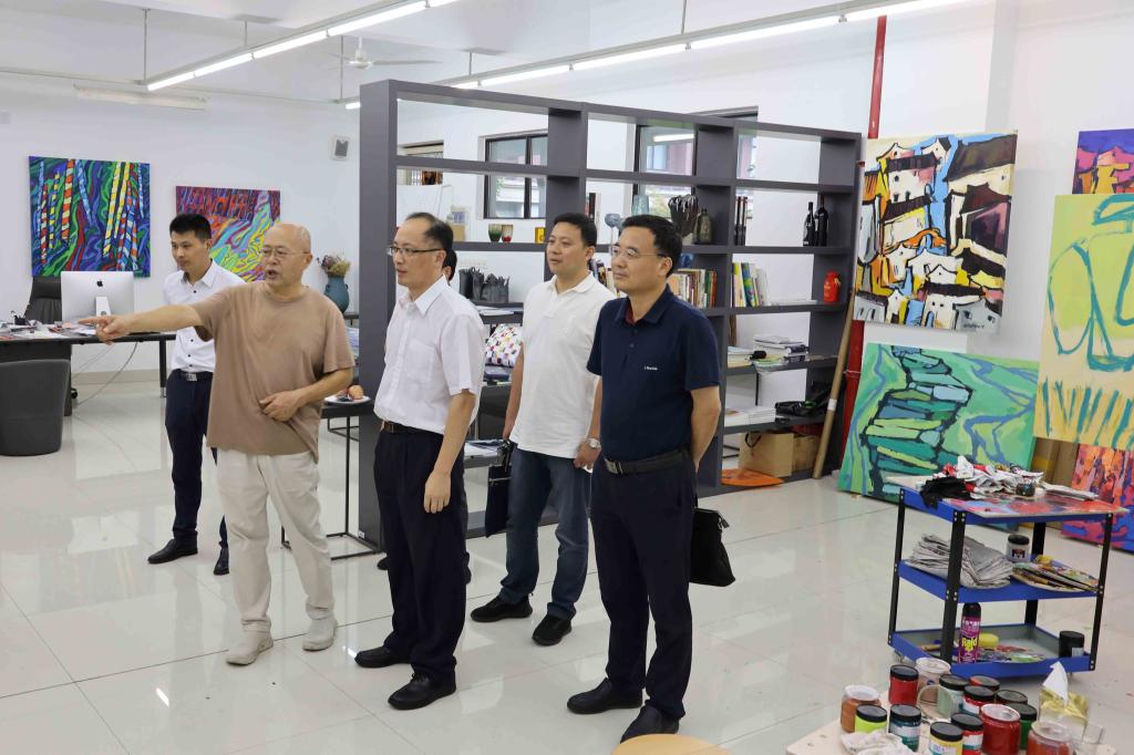 8月4日,浙江省委统战部副部长陈安率部机关涉侨处室主要负责人走访了晨晓艺术与设计学院,陈安副部长一行参观了晨晓工作室,并与学院领导及相关人员举行了座谈交流。bat365在线中国官网登录入口副院长袁志刚、办公室、晨晓艺术与设计学院相关负责人分别陪同参观和参加座谈会。