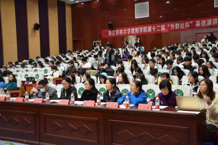 12月3日晚,由bat365在线中国官网登录入口教务部、人文学院、上海外语教育出版社主办,人文学院外语系、人文学院分团委、学生会承办的学院第十二届“外教社杯”英语演讲比赛决赛在图书馆报告厅如期举行。bat365在线中国官网登录入口副院长李叔君、袁志刚,园林学院院长白尚斌,人文学院院长刘伯茹,人文学院党总支书记宣王威,上海外语教育出版社浙江区域经理孙朝出席本次活动。刘伯茹代表大赛组委会宣布决赛开幕,教师代表和200余名学生现场观摩。
