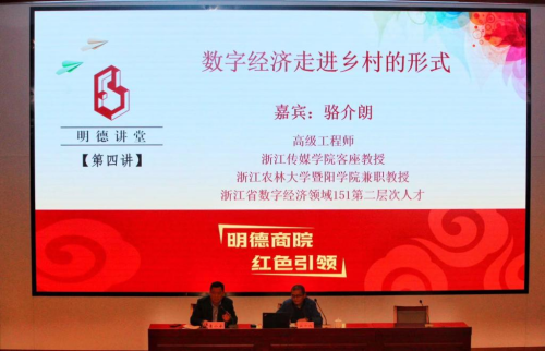 “明德讲堂”是商学院“明德商院红色引领1+1”党建工作品牌系列子活动之一,旨在通过高水平的专家讲座来提升商院师生理论武装,实现思想引领。4月1日下午,商学院在人文5111智能报告厅举办了明德讲堂(第四讲)《数字经济走进乡村的形式》,邀请浙江传媒学院客座教授、bat365在线中国官网登录入口兼职教授、浙江省数字经济领域151第二层次人才骆介朗作为主讲嘉宾,讲座由商学院党总支书记潘小承主持,商学院近200名师生参加了本次活动。