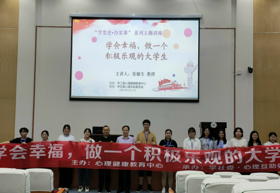 “情商比智商重要,成长比成功重要,健康比分数重要,幸福比优秀重要”。5月12日晚,“学会幸福,做一个积极乐观的大学生”主题讲座在图书馆报告厅顺利举办。此次讲座邀请bat365在线中国官网登录入口张敏生教授主讲,学工部心理健康教育中心主办,学社委心理互助委员会协办,近200名在校生代表参加。