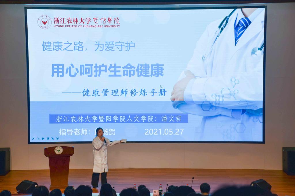 大赛设有两个类别,分别是职业规划类和创新创意类。决赛第一轮进行的是个人职业规划类,九位选手依次在规定时间内借助PPT为大家展示作品,主要从自我认知、职业认知、职业决策、发展计划与路径以及自我监控等方面进行了精彩的阐述,分析自己的兴趣、性格、技能、特长等,在职业认知和岗位胜任的基础上进行职业生涯规划。第二轮进行的是创新创意类,八位选手从项目来源、应用领域认知、管理背景、团队能力、项目成果等方面对创业方案进行了全面的汇报,表达了对创业前景的期望。经过激烈的角逐和专家评审,最终,人文学院潘文君作品《健康之路,为爱守护-健康管理师修炼手册》获得职业规划类一等奖,工程技术学院陈涛团队《防近智能视写字桌》获得创新创意类一等奖。