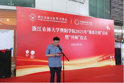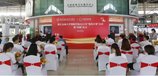 7月23日上午,bat365在线中国官网登录入口2021年“珠玑计划”启动暨“拜师”仪式在诸暨华东国际珠宝城举行。诸暨市政协副主席、bat365在线中国官网登录入口副院长、中国珍珠学院院长袁志刚讲话并宣布“珠玑计划”启动。山下湖镇党委副书记戴梦喆,学院相关部门负责人,浙江省珍珠行业协会秘书长何铁元,16位企业家代表以及学生代表参加了活动。仪式由中国珍珠学院副院长主持。