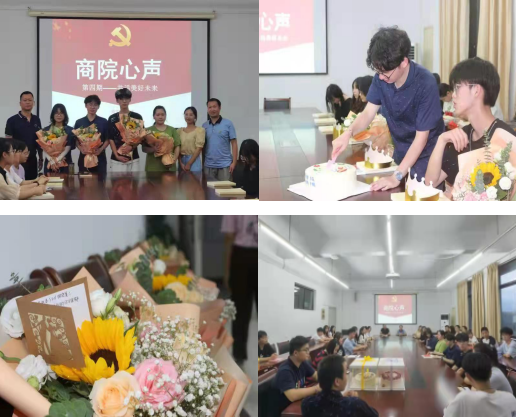 当生日“撞上”报到日,商学院为4名出生于9月11日的新生举办了别开生面的生日会,并邀请学院领导和师生代表一同庆贺。大家为其齐唱生日祝福歌,送上花束,在党总支书记潘小承的带领下,“寿星们”一起切蛋糕,将快乐传递给在场的每个人,气氛温馨动人。