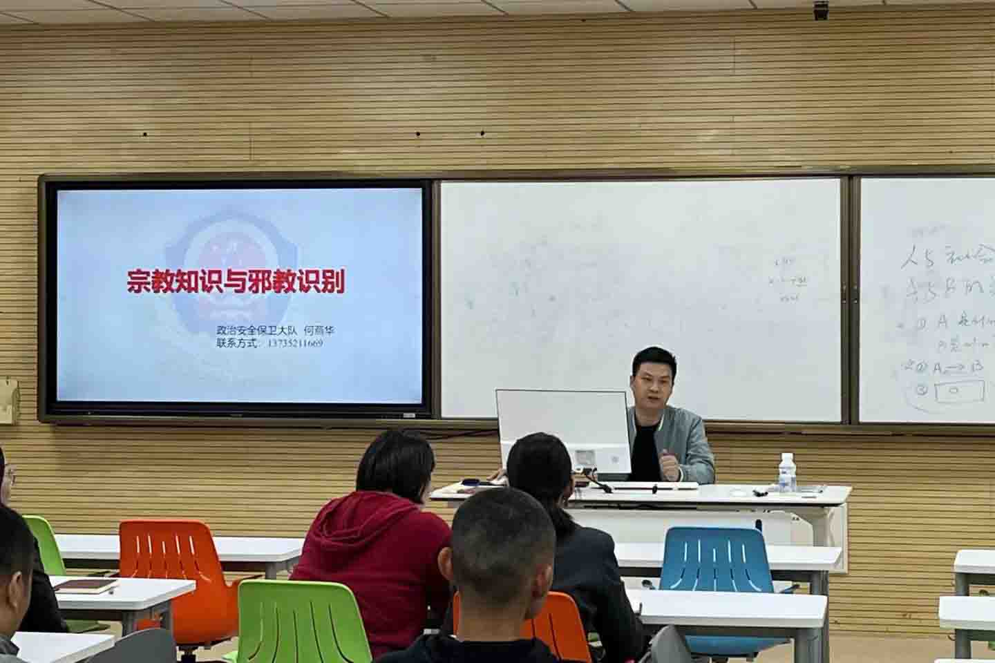 何燕华对国内几大主要宗教特点进行了介绍,之后重点分析了邪教与宗教的区别、邪教的危害与打击邪教情况,并就辅导员日常思想政治教育工作中开展此类工作的注意事项做了说明。