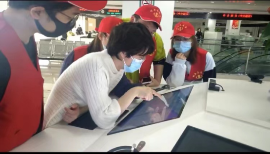 在办税服务厅现场,身着红色志愿者马甲的纳税服务志愿者活跃在办税服务厅各区域。志愿者们分为两组进行志愿活动:一组在一楼的服务大厅,对前来办理办理医保签约服务但是不太了解流程的市民,耐心指导如何操作,认真解答他们遇到的问题;另一组则在三楼,帮助市民在自助服务机上进行操作,对于碰到的情况,及时解答或者帮助其寻找专业人士求助。