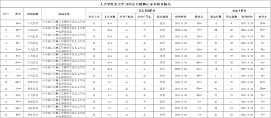 深学悟透,扎实做好党史学习教育。根据学院党委要求,人文学院党总支迅速部署,9月26日上午,人文学院党员之家在人文3425召开党史情况督查的工作会议。党员之家根据工作安排编为四个专项小组,历时一个月,针对人文学院党总支以及6个支部关于党史学习教育开展情况进行了全面检查。其中对全体师生党员指定书目和学习笔记本做了详细检查记录,并进行公示通报。