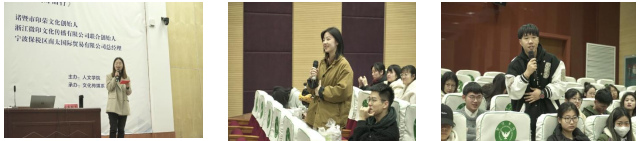 本次讲座以向心而生、向好而行为主题,孟张立先生重点分享了自己的创业经历以及从业多年的策划心得。随后,孟总通过介绍创业初期以及发展阶段的一些策划案例,展现了其如何在摸索中前进,逐步取得成绩、得到行业认可的过程。同时,他也结合诸暨本土会展策划行业发展现状,帮助同学们深入了解了活动策划过程中的创意构想和品牌运营。除此以外,孟张立先生还谈及在疫情时期经历的创业挫折,团队在营收困难的情况下,稳定心态、梳理业务、开辟新路,从而获得了全新的发展,这也帮助同学们深刻认识到团队协作的重要性。最后,他以“趁年轻,去热爱”勉励在座同学要不负时光,追逐热爱,莫愁前路,向好而行。