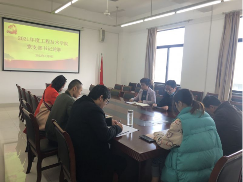 2022年3月8日上午,工程技术学院党支部书记述职会议在理工3402会议室召开。学院党政班子成员参加会议,会议由党总支书记周聪主持。