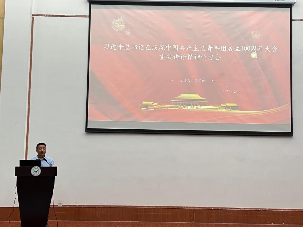 5月19日下午,我院在图书馆报告厅召开全体学生干部关于习近平在庆祝中国共产主义青年团成立100周年重要讲话精神学习会,此次会议由学院党委副书记高国俊主讲。学工部·团委主任,各二级学院党总支副书记、团学指导老师以及学生代表参加。