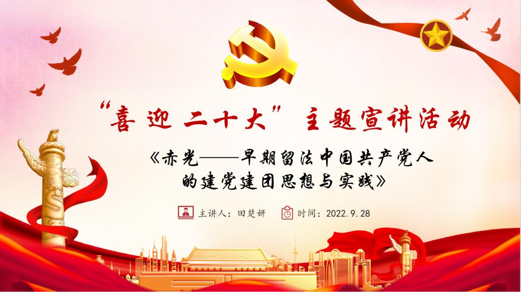 田楚妍博士以《赤光--早期留法中国共产党人的建党建国思想与实践》为题,以中国共产党人早期留法勤工俭学运动为切入点,用丰富的史料展示了留法勤工俭学学生把个人理想与国家前途凝结在一起,谱写出的中国近代革命史、教育史和留学史上的光辉篇章。从五四时期马克思主义的传播、留法勤工俭学运动的发展、确立马克思主义信仰与三次斗争、成立旅欧中国共产主义青年团四大部分展开宣讲,带领同学们全面认识五四时期无政府主义在中国的传播、实践与消亡,回顾蔡和森等勤工俭学生的留法岁月,了解旅欧中国共产主义青年团的发展史及其特质。
