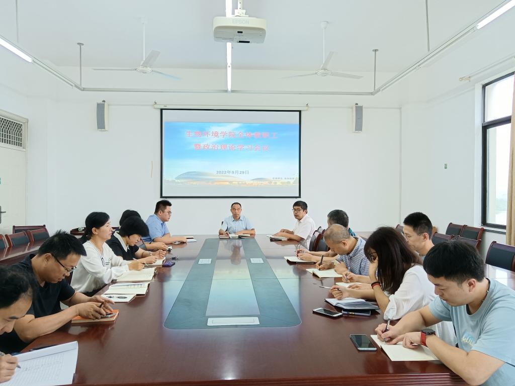 9月29日下午,生物环境学院在理工3502会议室召开全体教职工暨政治理论学习会议,会议由生物环境学院院长严国兵主持,全体教职工参会。