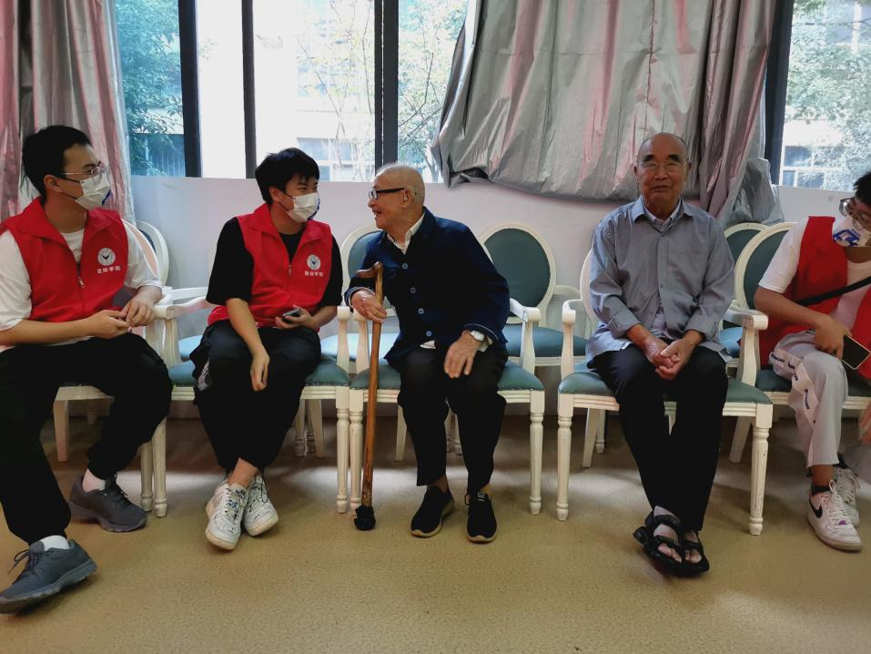 在欢乐之家休养院活动现场,学生党员志愿者与老人们围坐攀谈,了解他们在休养院的生活日常,询问他们的身体状况,并聊起了家常为日后回访做准备。老人们各个春风满面、笑意盈盈,从志愿者手中接过慰问礼品和诚意满满的节日祝福。慰问过程中正赶上了敬老院每日一做的养生操,志愿者跟着老人们一起做完一整套养生操后,志愿服务活动也迎来了高潮部分。