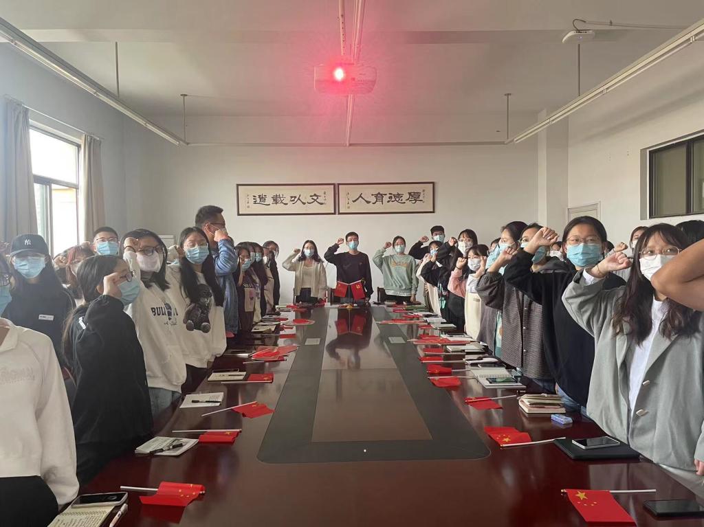 活动伊始,参与本次活动的师生全体起立共唱国歌,并为老一辈伟大的中国共产党同志进行默哀。随后,师生共同观看党的二十大开幕会直播。在观看党的二十大开幕会直播后,党员同志代表带领全体参会人员重温并学习入党誓词。