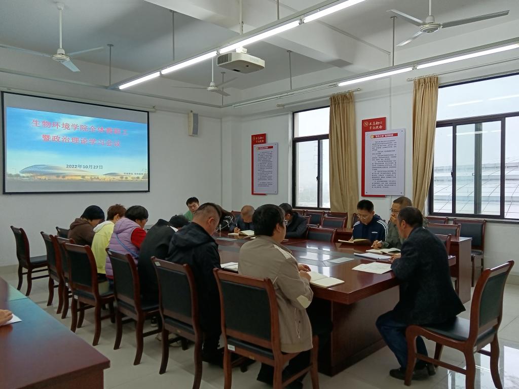 10月27日下午,生物环境学院在理工3502会议室召开全体教职工暨政治理论学习会议,会议由生物环境学院党总支副书记(主持工作)马忠兴主持,全体教职工参会。