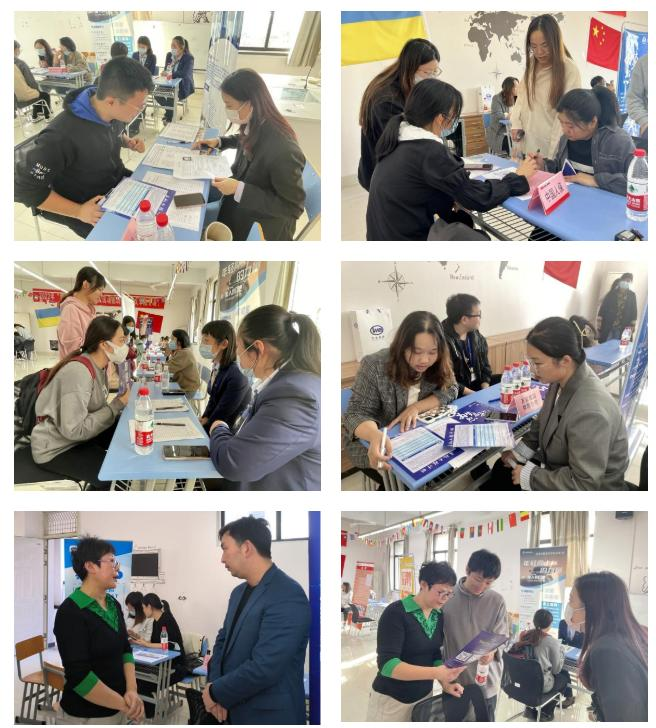 宁波银行绍兴分行,万安集团有限公司,诸暨海亮后勤有限公司等16家知名企业到场参与本次招聘会,提供岗位143个。据悉,本次招聘会吸引到近300位毕业生同学参加。会上,人文学院、马克思主义学院应届毕业生结合自身情况与感兴趣的用人单位从薪资待遇、未来发展等多方面进行积极交流,并向心仪单位递交简历。此外,人文学院、马克思主义学院领导也来到了招聘会现场,与用人单位进行详细交谈,进一步了解各企业基本情况、未来发展及福利待遇等,努力保障学子就业利益。