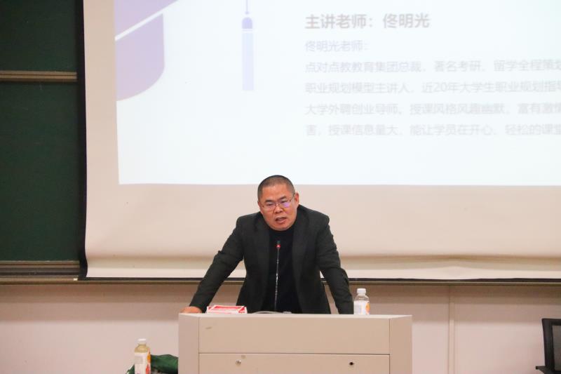 讲座邀请考研辅导名师佟明光做主讲嘉宾。他结合自身多年的考研指导经验,为同学们详细讲解了如何选择学校、选择专业,及考研英语、政治、专业课的复习方法、复习时间分配等注意事项。同时对初试后的复试和调剂相关问题也进行了详细的解读。并以学长学姐真实的成功案例,告诉大家付出总会有回报。现场,同学们还与佟老师进行了互动交流。