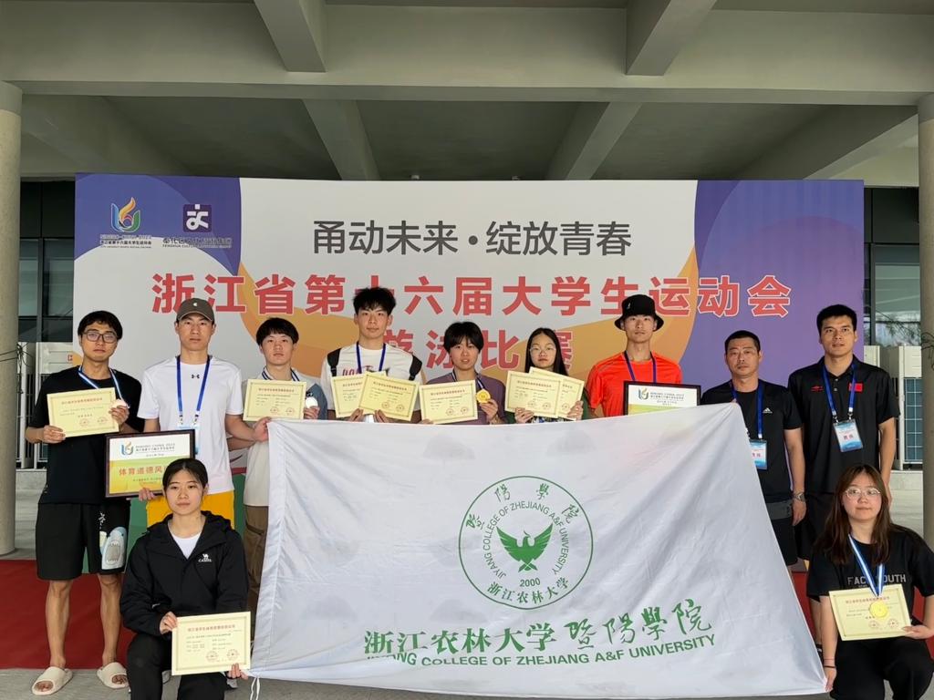 浙江省第十六届大学生运动会游泳比赛于5月31日至6月4日在宁波奉化举行。学院学生共获得2金1银1铜、1个第四、1个第七、1个第八、女子团体第八名、“体育道德风尚奖”等优异成绩。