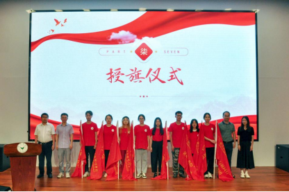 出征仪式上,各二级学院党总支书记为学院暑期社会实践重点立项团队授旗。社会实践教师代表与学生代表分别进行了发言。
