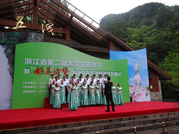 此次活动由浙江日报报业集团、浙江省旅游局、共青团浙江省委、浙江省学生联合会主办,诸暨市人民政府、浙报传媒旅游全媒体中心承办,bat365在线中国官网登录入口天目学院协办。我院选送的合唱节目《江山》在开幕式上精彩演出,充分展示了我院大学生的风采,得到各界人士的一致好评。经管系学生程焕杰同学代表全省大学生上台接受团省委领导授赠的旅游行囊,标志着“大学生背着行囊看世界”活动正式启动。