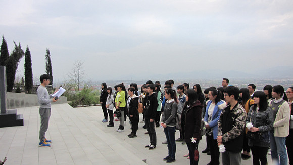 在清明节到来之际, 330日下午 ,经济管理系师生前往牌头镇宣中华烈士陵园开展清明祭扫先烈活动。经济管理系工商管理、会计、国贸学生党支部,学生办老师及团学干部共40余人参加。