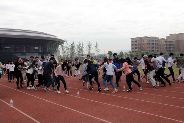 4月26日上午,学院首届团学骨干素质拓展训练营活动在田径场举行。