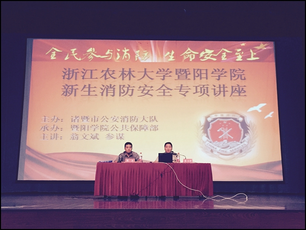 为切实提高2015级新生消防安全意识,预防和减少校园火灾事故发生,9月14日下午,公共保障部邀请诸暨公安消防大队翁文斌参谋,为我院全体2015级新生进行了消防安全教育讲座。